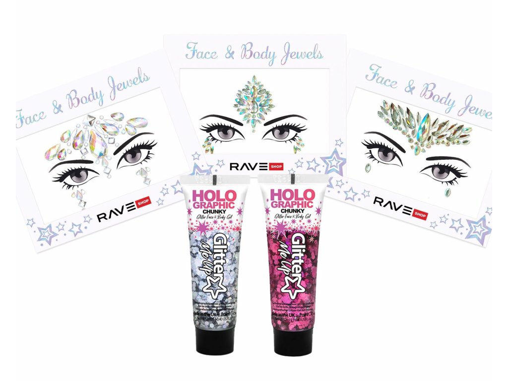 Tre set di strass adesivi per viso e corpo, perfetti per ogni festa o festival. Tutti gli strass adesivi sono pre-applicati su un foglio di pellicola di supporto, da cui basta staccarli e applicarli sul viso o sul corpo. Nel set ci sono glitter in gel per la pelle, che creano un fantastico effetto scintillante, un accessorio perfetto per il tuo outfit da festa.